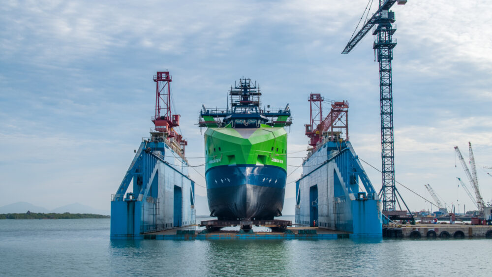 This ship is the first of 23, innovative low-emission vessels, set to transform operations at sea.